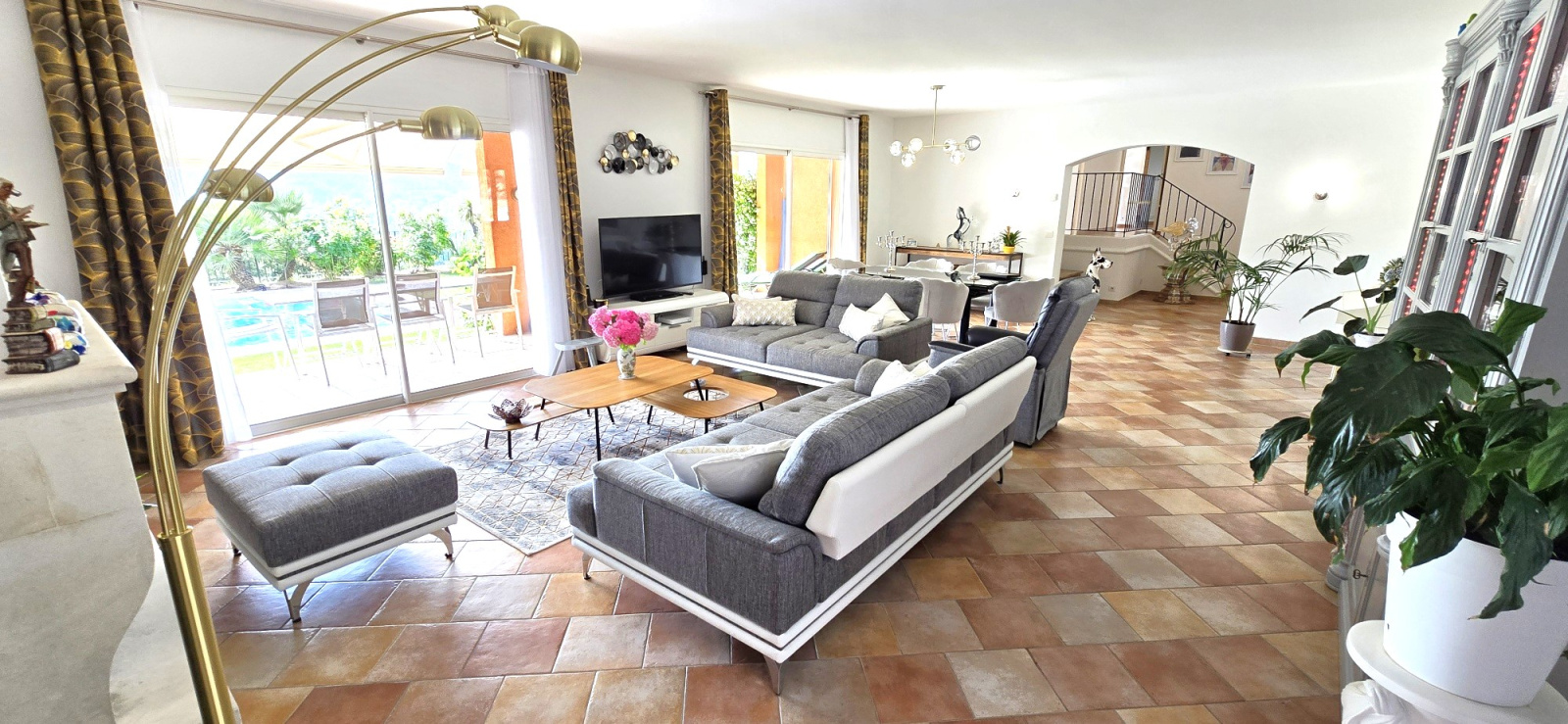 Superbe propriété d'exception avec vue panoramique sans vis à vis plein sud. Maison T5 comme neuve de 180 m² avec sous-sol de 90 m² dont salle de sport, grand salon de 56 m², cuisine de 17 m², suite parentale de 35 m², 2 suites et un bureau. Piscine 10x5 m avec nage à contre courant pré-installée. Chauffage au sol, clim réversible, arrosage automatique, alarme avec vidéo surveillance. Rare à voir.