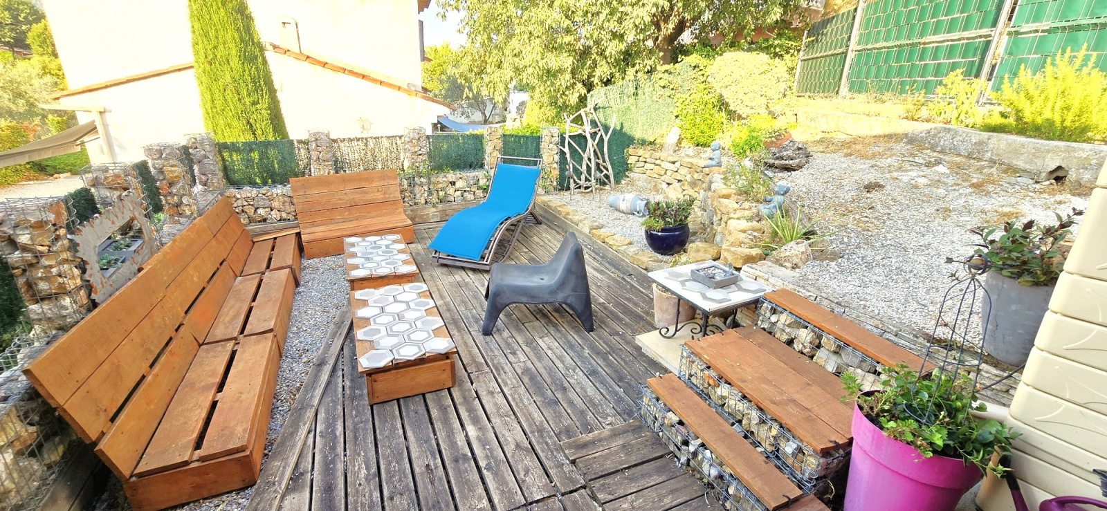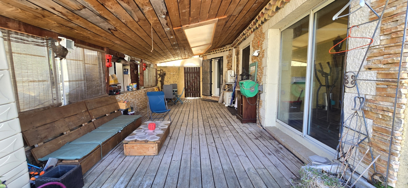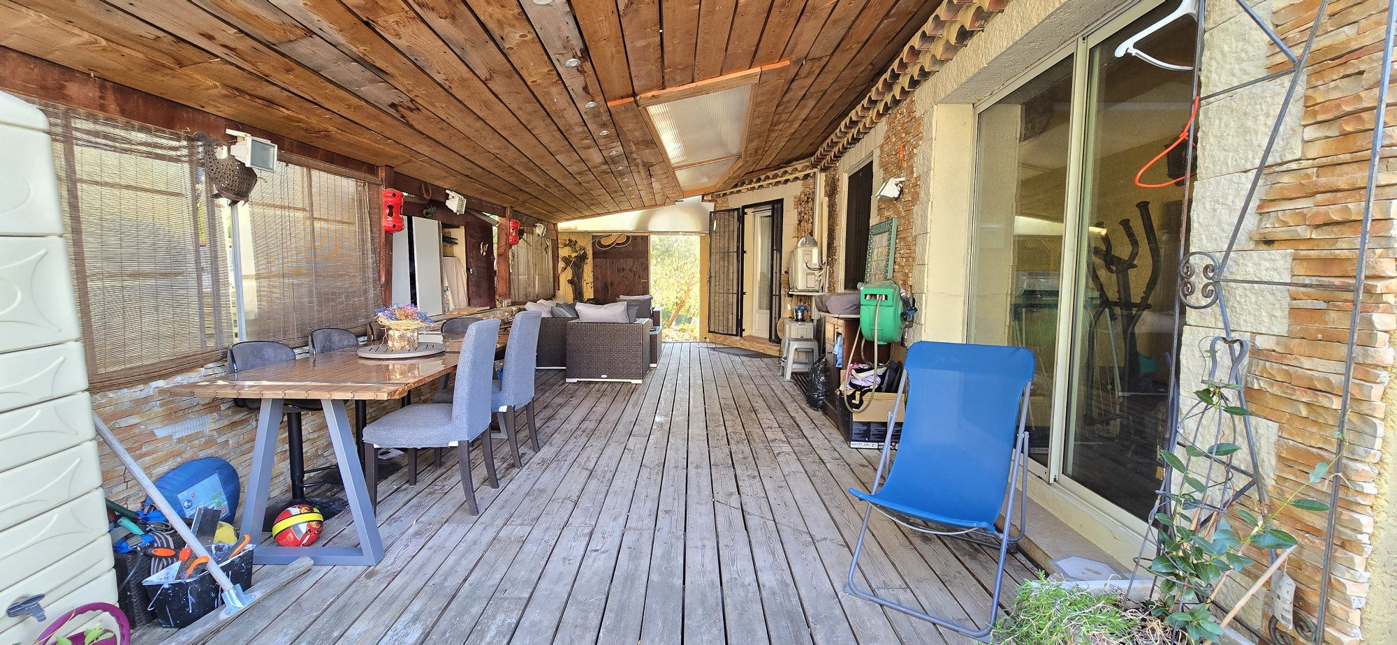 1er étage : Salon - cuisine, chambre 4, salle d'eau, cellier, salle de sport (ou chambre 5), toilettes, terrasse couverte de 35 m².