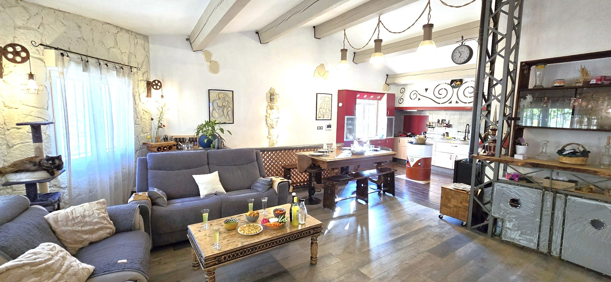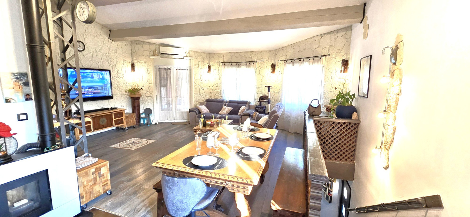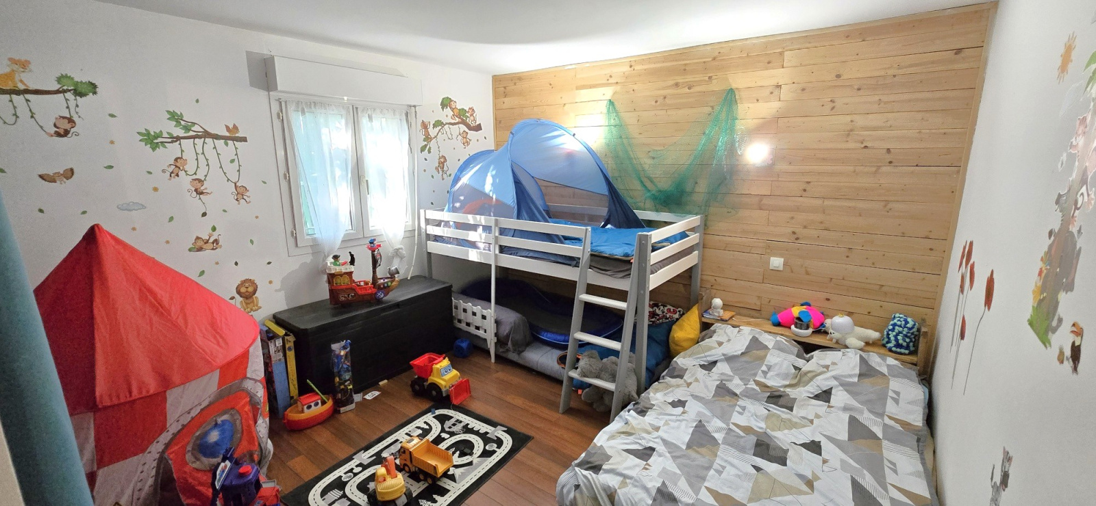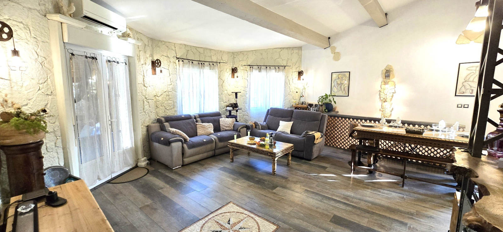 1er étage : Salon - cuisine, chambre 4, salle d'eau, cellier, salle de sport (ou chambre 5), toilettes, terrasse couverte de 35 m².
