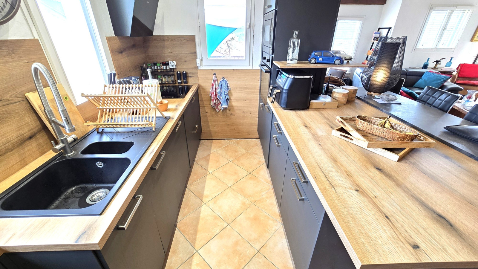 Superbe loft T3 rénové avec matériaux de qualité au 2e et dernier étage d'une petite résidence sécurisée à pieds du centre ville. Superbe pièce à vivre - cuisine (entièrement équipée) très lumineuse avec accès à deux terrasses avec vue, une suite parentale avec accès direct à une terrasse, 2e chambre, SDE, toilettes, petite mezzanine, grand garage avec porte électrique et alarme. Possibilité d'achat meublé.